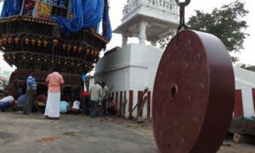 திருச்சி, பெல் நிறுவனத்தில், இரும்பு சக்கரங்கள் தயாரிக்கப் பட்டன. இவை நேற்று (நவம்., 28ல்), ஸ்ரீபெரும்புதூருக்கு கொண்டு வரப்பட்டன.இதையடுத்து, தேரின் சக்கரங்களை இணைக்கும், இரண்டு மைய கட்டைகள் அகற்றப்பட்டு, அதற்கு பதில் இருப்பிலான மைய ராடுகள் மற்றும் நான்கு இரும்பு சக்கரங்கள், நேற்று (நவம்., 28ல்) பொருத்தப்பட்டன.