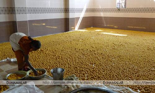 லட்டு தயாரிப்புக்கு, 1,080 கிலோ கடலைமாவு, 1,700 கிலோ சர்க்கரை, உலர்ந்த திராட்சை, 125 கிலோ, முந்திரி, 125 கிலோ, நெய், 40 கிலோ, ரீபைன்ட் ஆயில், 800 கிலோ, ஆகியவை பயன்படுத்தப்படுகிறது. 40 பேர் பணியில் ஈடுபட்டுள்ளனர். வழிபாட்டுக்குழு தலைவர் சிற்றரசு கூறியதாவது: மகாவீர ஆஞ்சநேயர் வார வழிபாட்டு குழு சார்பில், கடந்த ஆண்டு, 60 ஆயிரம் லட்டுகள் வழங்கப்பட்டன. பக்தர்கள் வருகை அதிகமானதால், இம்முறை, 75 ஆயிரம் லட்டுகள் தயார் செய்யப்படுகின்றன. லட்டுடன் சேர்த்து வழங்க, 50 ஆயிரம் செந்துாரக்கயிறுகள், திருப்பதியில் இருந்து தருவிக்கப் பட்டுள்ளது. இவை, சிறப்பு பூஜைக்கு பின், பக்தர்களுக்கு பிரசாதமாக வழங்கப்படும். இவ்வாறு அவர் தெரிவித்தார்.