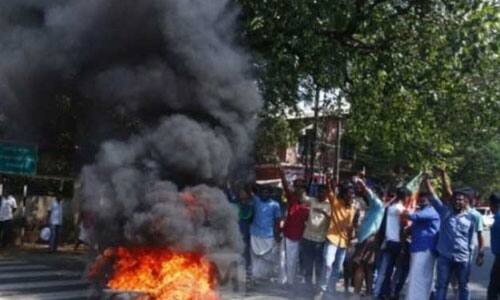 தீவைப்பு: கோழிக்கோடு, கண்ணூர் மாவட்டங்களில் போராட்டக்காரர்கள் வாகனங்களை மறித்துள்ளனர். சாலையில் டயர்களை எரித்தனர். ஆட்டோக்கள் அடித்து நொறுக்கப்பட்டன. பாலக்காட்டில் உள்ள வெண்ணக்காரா என்ற இடத்தில் உள்ள ஈஎம்எஸ் மெமோரியல் நூலக கட்டடத்திற்கு தீவைத்தனர். தவனூர், மலப்புரம் மாவட்டங்களில் உள்ள கம்யூனிஸ்ட் அலுவலகத்திற்கும் தீவைக்கப்பட்டது. பந்தளத்தில் கம்யூனிஸ்ட் தொண்டர்கள் மீது தாக்குதல் நடத்தப்பட்டது. கோழிக்கோட்டில் பல இடங்களில் கல்வீச்சு சம்பவங்களும் நிகழ்ந்துள்ளன. பெரும்பாலான கடைகள் அடைக்கப்பட்டுள்ளன. பஸ்கள் எதுவும் இயக்கப்படவில்லை. ஆட்டோ ரிக்ஷாக்கள் மற்றும் இரு சக்கர வாகனங்கள் மட்டுமே இயங்குகின்றன. முழு அடைப்பு போராட்டத்தை பாதுகாப்பு பலப்படுத்தப்பட்டுள்ளது.