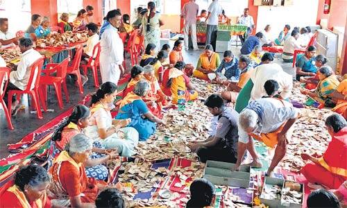 திருப்புவனம்: மடப்புரம் பத்ரகாளியம்மன் கோயிலில் 40 நாட்களுக்கு ஒரு முறை உண்டியல் எண்ணும் பணி நடைபெறும். கடந்த மூன்று மாதங்களாக உண்டியல் திறக்கப்படவில்லை. நேற்று (ஜன., 2ல்) காலை பரமக்குடி அறநிலையத்துறை இணை ஆணையர் ராமசாமி தலைமையில் மடப்புரம் கோயில் செயல் அலுவலர் செல்வி, கோயில் ஊழியர்கள், அய்யப்பா சேவா சங்கத்தினர் உண்டியல் பணத்தை எண்ணும் பணியில் ஈடுபட்டனர்.