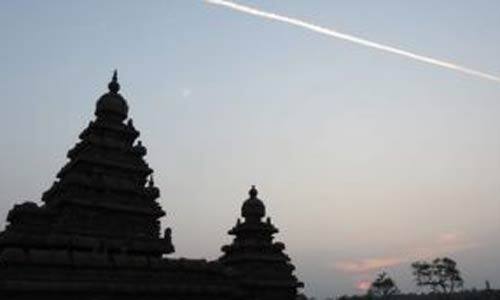 மாமல்லபுரம்: மாமல்லபுரம் கடற்கரைக்கோவில், ஜெட் விமானத்தின் புகை பின்னணியில் மிளிர்ந்து, சுற்றுலாப் பயணியர், பரவசம் அடைந்தனர்.மாமல்லபுரத்தில், கி.பி., 7ம் நூற்றாண்டு, பல்லவர் கால, கடற்கரைக்கோவில், சுற்றுலாப் பயணியரை கவர்கிறது. தொல்லியல் துறைக்கு நுழைவுக்கட்டணம் செலுத்துவோர், இக்கோவிலை, அருகிலிருந்து, கண்டு ரசிக்கின்றனர். வடகிழக்கு பருவ மழைக்காலம் முடிந்து, தற்போது, இயல்பு சூழல் நிலவுகிறது.