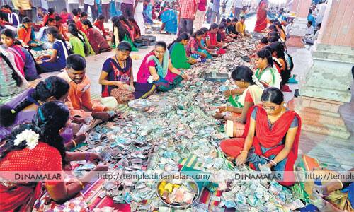 திண்டுக்கல் மாவட்டம், பழநி முருகன் கோவில் தைப்பூச விழாவை முன்னிட்டு லட்சக்கணக்கான பக்தர்கள் குவிந்தனர். இதனால், ஜன.,10, 11ல் உண்டியல் எண்ணப்பட்டது. அதில் ரொக்கமாக, 2.19 கோடி ரூபாய் கிடைத்தது.தைப்பூச விழா முடிந்த பின், இரு நாட்களில் வசூலான உண்டியல் பணம் நேற்று எண்ணப்பட்டது. முதல்நாள், 2.71 கோடி ரூபாய் வசூலானது. நேற்று, 1.94 கோடி ரூபாயும், தங்கம்,- 291 கிராம், வெள்ளி, 10 ஆயிரத்து 980 கிராம், வெளிநாட்டு கரன்சி, 174 கிடைத்தது. ஜனவரியில் மட்டும், 6.85 கோடி ரூபாய் வருவாய் கிடைத்துள்ளது. இது, வழக்கத்தை விட, நான்கு மடங்கு அதிகம்.