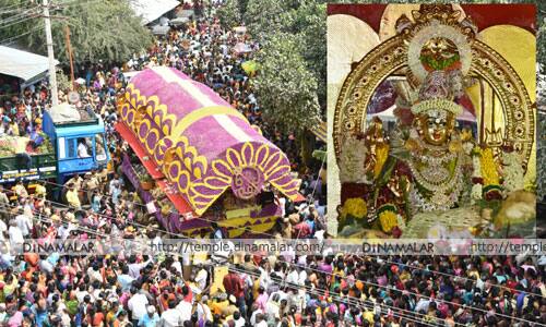 திண்டுக்கல்: திண்டுக்கல் கோட்டை மாரியம்மன் கோயில் மாசித் திருவிழாவை முன்னிட்டு பூச்சொரிதல் அலங்கார ரத ஊர்வலம் நடந்தது.