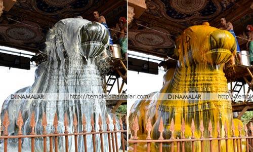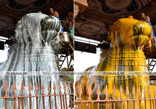 தஞ்சாவூர்: தஞ்சாவூர் பெரியகோவில் தை மாத சனி பிரதோஷத்தை முன்னிட்டு, நந்தியம் பெருமானுக்கு மஞ்சள்,பால் அபிஷேகம் நடந்தது.