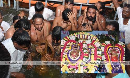 திருவண்ணாமலை அருணாசலேஸ்வரர் கோவிலில் இன்று (பிப்.,4ல்) தை அமாவாசை மற்றும் மஹோதய புண்ணியகால விழாவை முன்னிட்டு, அய்யங்குளக்கரையில் அண்ணாமலையாருக்கு சூலம் ரூபத்தில் தீர்த்தவாரி நடந்தது. சிறப்பு அலங்காரத்தில் உண்ணாமுலையம்மன் சமேதரராய் அண்ணாமலையார் மற்றும் பாரசக்தியம்மனுடன் முன் எழுந்தருளி பக்தர்களுக்கு அருள்பாலித்தனர். ஏராளமான பக்தர்கள் தரிசனம் செய்தனர்.
