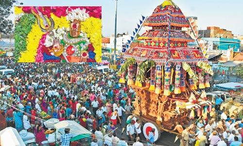 மாலை 4:30 மணிக்கு தேரோட்டம் ஆரம்பமானது. தேரின் மீது பழங்களையும், நவதானியங் களையும் பக்தர்கள் வீசினர். மாலை 5:45 மணிக்கு தேர் நிலைக்கு வந்தது. இணை ஆணையர் செல்வராஜ், துணை ஆணையர் செந்தில்குமார் உட்பட பலர் பங்கேற்றனர். இரவில் பக்தர்கள் பெண்வேடம், பூதம் உள்ளிட்ட வேடமிட்டு வண்டிக்கால் பார்த்தலும், நள்ளிரவில் திருக்கம்பத்தை கங்கையில் சேர்க்கும் நிகழ்ச்சியும் நடந்தது.