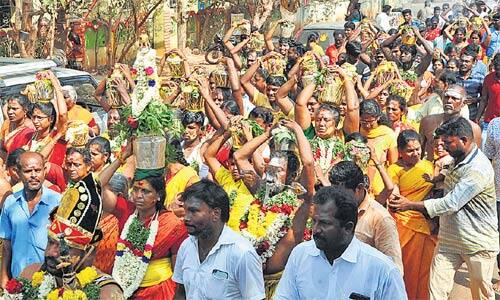 காரைக்குடி: காரைக்குடி காளையப்பா நகர் காமாட்சி அம்மன் கோயில் மாசி திருவிழாவை யொட்டி பக்தர்கள் பால்குடம் எடுத்து நேர்த்திக் கடன் செலுத்தினர்.