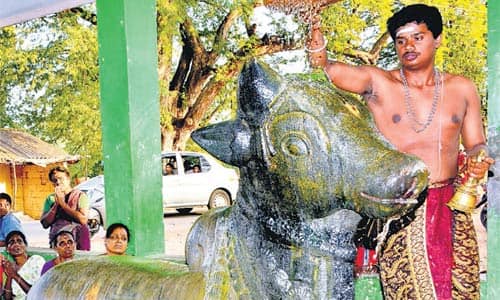 இக்கோயிலில் 5 அடி உயர நந்தி சிலை உள்ளது. நேற்று மாலை 4:30 மணிக்கு நந்தீஸ்வரருக்கு மஞ்சள், திருநீரு, பால், பன்னீர், சந்தனம் உள்ளிட்ட 18 வகையான மங்கலப் பொருட்களால் அபிஷேகம் செய்யப்பட்டது. தொடர்ந்து நந்திதேவருக்கு மலர்களால் அலங்காரம் செய்யப்பட்டு சிறப்பு வழிபாடு நடத்தப்பட்டது. மூலவருக்கும் சிறப்பு அபிஷேகம் செய்யப்பட்டு தீபாராதனை காட்டப்பட்டது. சுவாமி அம்பாளுடன் வீதி உலா வந்தார். ஏராளமான பக்தர்கள் பங்கேற்றனர். அன்னதானம் வழங்கப்பட்டது. அதேபோல் பிரான்மலை திருக்கொடுங்குன்றநாதர் கோயிலிலும், சதுர்வேதமங்கலம் ருத்ரகோடீஸ்வரர் கோயிலிலும் சனி பிரதோஷ வழிபாடு நடந்தது.