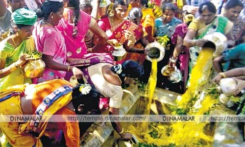இக்கோயிலில் இத்திருவிழாவையொட்டி சுற்றியுள்ள கிராமபெண்கள் மஞ்சள் நீர் எடுத்து வந்து அம்மனுக்கு சிறப்பு வழிபாடு நடத்திய பின் கோயில் முன்புள்ள தொட்டியில் ஊற்றுகின்றனர். மாமன், மைத்துனர் முறையுள்ளவர்கள் மஞ்சள் நீரை எடுத்து தெளித்து மஞ்சள் நீராடினர். இப் பகுதியில் மழை பெய்யவும், அம்மனை குளிர்விக்கவும் வேண்டி அறுவடைக்காலம் முடிந்த பின் மகாசிவராத்திரியில் மஞ்சள் நீராட்டு உற்ஸவமும், ஜல்லிக்கட்டும் நடத்தப்பட்டு வந்தது.
