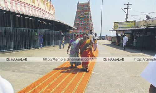 ரூ. 2.05 லட்சம்: இதனால், முருகன் மலைக்கோவிலில் கடுமையான வெப்பம் உள்ளதாலும், கோவில் பொது நிதியில் இருந்து, 2.05 லட்சம் ரூபாய் மதிப்பீட்டில், தேங்காய் நாரால் தயாரிக்கப்பட்ட கால் தரைவிரிப்பு, மாடவீதி சுற்றியும் போடப்பட்டு உள்ளது. மொத்தம், 6 அடி அகலமும், 400 மீட்டர் நீளமுள்ள தரைவிரிப்பான் அமைக்கப்பட்டுஉள்ளது.இந்த தரைவிரிப்பின் மேல், பக்தர்கள் நடந்துச் செல்வதால், வெயில் தாக்கம் குறையும். இதுதவிர, அடுத்த மாதம் முதல், வெயிலில் இருந்து பக்தர்களைப் பாதுகாக்க, கோவில் சார்பில் நீர்மோர் வழங்கப்பட உள்ளது.