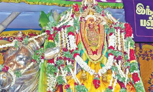 விருதுநகர்: பராசக்தி மாரியம்மன் கோயில் பொங்கல் விழாவை முன்னிட்டு பஞ்சுகடை மகமை மண்டபத்தில் ரிஷப வாகனத்தில் எழுந்தருளிய பராசக்திமாரியம்மன் மற்றும் வெயிலுகந்தம்மன் பக்தர்களுக்கு காட்சி தந்தனர்.