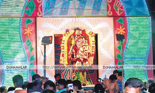 நேற்று முன்தினம் காலை அம்மனுக்கு பல்வேறு அபிஷேகங்கள், சிறப்பு பூஜை மற்றும் தீபாராதனை நடந்தது. தொடந்து காந்தி கலைரங்கில் அமைக்கப்பட்டிருந்த மேடையில் நாதஸ்வர கச்சேரி நடந்தது. தொடர்ந்து குதிரை வாகனத்தில் எழுந்தருளிய அம்மன் மின் அலங்கார ரதத்தில் பெரியகடை வீதி., தெலுங்கர் தெரு, மார்க்கெட் வீதி, போலீஸ் ஸ்டஷேன் மற்றும் மீனாட்சிபுரம் பகுதிகளில் நகர்வலம் சென்றார். மூன்று லாந்தர் வழியாக மீண்டும் கோயிலை அடைந்தார். வழி நெடுகிலும் ஏராளமான பக்தர்கள் அம்மனை வரவேற்று தரிசனம் செய்தனர்.