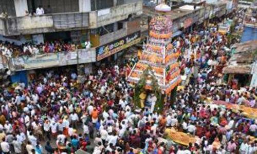 * குன்னூர் தந்தி மாரியம்மன் கோவில் முக்கிய சித்திரை தேர் திருவிழா நடந்தது. துர்கையம்மன் கோவிலில் இருந்து நாட்டுப்புற நிகழ்ச்சிகளுடன் பிரம்மாண்ட ஊர்வலம் நடந்தது. மதியம், 1:00 மணியளவில் தேர் வடம் பிடிக்கப்பட்டது. குன்னூர் நகராட்சி பொறுப்பு கமிஷனர் பாலமுருகன் வடம் பிடித்து துவக்கி வைத்தார். அதில், பக்தர்கள் உப்பு மழை பொழிந்து, வழிபட்டனர்.