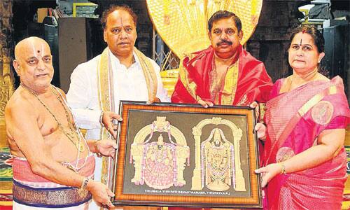 திருப்பதி: திருமலையில், தமிழக முதல்வர் எடப்பாடி பழனிசாமி, தன் குடும்பத்தினருடன் வழிபட்டார். திருப்பதி ஏழுமலையானை தரிசிக்க, தமிழக முதல்வர் எடப்பாடி பழனிசாமி, தன் குடும்பத்தினருடன் நேற்று காலை, கோவில் முன் வாசலுக்கு வந்தார்.