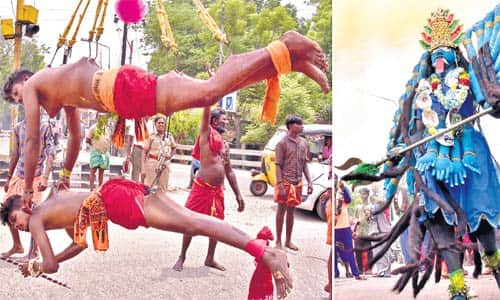 மதுரை: மதுரை ஜெய்ஹிந்த்புரம் வீரகாளியம்மன் கோயில் திருவிழாவை முன்னிட்டு பறவை காவடி மற்றும் காளியம்மன் வேடம் அணிந்து வந்த பக்தர்கள்.