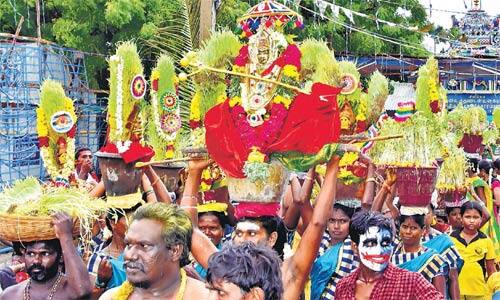விருதுநகர்: சின்ன மூப்பன்பட்டி காளியம்மன் கோயில் வைகாசி விழாவில் முளைப்பாரி எடுத்து நேர்த்தி கடன் செலுத்திய பக்தர்கள்.