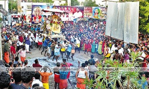 திருவிழா கடந்த 6ம் தேதி இரவு அம்மனுக்கு காப்பு அணிவித்து விழா துவங்கியது. தினமும், சிறப்பு ஆராதனை மற்றும் வீதியுலா நடந்தது. 14ம் தேதி காலை 5:00 மணியளவில் காத்தவராயன் கழுமரம் ஏறுதல், 7:00 மணியளவில் செடல், அலகு குத்துதலும் பகல் 12:00 மணியளவில் காளி கோட்டை இடுதல், மாலை 4:00 மணியளவில் தீமிதி திருவிழா நடந்தது.இதில் ஏராளமானோர் தீ மிதித்து நேர்த்திக்கடன் செலுத்தினர். 15ம் தேதி 3:00 மணியளவில் சின்னான் சாமி மோடி எடுத்தலும், 16ம் தேதி அம்மனுக்கு மஞ்சள் நீராட்டு விழாவும் நடந்தது.