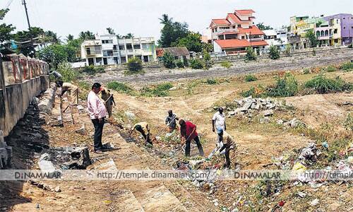 ஏரியிலிருந்து பாதாள கால்வாய் மூலம் குளத்திற்கு தண்ணீர் வந்து, எப்போதும் குளம் நிர் நிறைந்து காணப்படும்.சிறப்பு வாய்ந்த இக்குளத்தை புராதன நகர மேம்பாட்டு திட்டத்தில் மறைந்த முதல்வர் ஜெயலலிதா சீரமைத்து செம்மைப்படுத்த நிதி ஒதுக்கி இருந்தார். ஒப்பந்ததாரர்கள் குளத்தில் இருந்த மண்ணை எடுத்து விற்று விட்டு, பெயரளவுக்கு சீரமைப்பு பணியை செய்தனர்.பணியில் ஏற்பட்ட முறைகேடு தொடர்பான புகார் காரணமாக பணிகள் பாதியிலேயே நின்றது. இதன் காரணமாக குளத்தில் முட்புதர்கள் மண்டி, ஏரியிலிருந்து வரும் கால்வாய் அடைப்பு ஏற்பட்டு குளம் பாழானது.இதுகுறித்த செய்தி தினமலர் நாளிதழில் சமீபத்தில் படத்துடன் வெளியானது. அதனைத் தொடர்ந்து, பேரூராட்சி செயல் அலுவலர் ஜெயராமன் மேற்பார்வையில், நேற்று சீரமைப்பு பணி துவங்கியது. தற்காலிகமாக குளத்தில் உள்ள முட்புதர்களை அகற்றி படிகளில் உள்ள மண் அள்ளும் பணியில் பேரூராட்சி ஊழியர்கள் ஈடுபட்டிருந்தனர். இரண்டு ஜே.சி.பி., மூலம் குளத்தில் இருந்த மண் சமன் செய்யும் பணி நடந்தது.தொடர்ந்து ஏரியிலிருந்து குளத்திற்கு வரும் பாதாள கால்வாயில் ஏற்பட்டுள்ள அடைப்பை சீரமைக்க பேரூராட்சி நிர்வாகம் நடவடிக்கை எடுத்திருப்பதாக செயல் அலுவலர் ஜெயராமன் தெரிவித்துள்ளார்.