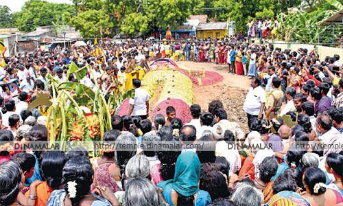 திண்டிவனம் ராஜாங்குளக்கரையில் உள்ள திரவுபதியம்மன் கோவில் அக்னி வசந்த உற்சவம் கடந்த மாதம் 9ம் தேதி கொடியேற்றத்துடன் துவங்கியது.கடந்த மாதம் 29ம் தேதியிருந்து, மகாபாரத சொற்பொழிவும், கடந்த 11ம் தேதியிலிருந்து தெருக்கூத்து நிகழ்ச்சியும் நடந்து வருகிறது.முக்கிய நிகழ்வாக தீமிதி திருவிழா நேற்று மாலை நடந்தது. இதையொட்டி அம்மனுக்கு சிறப்பு அபிஷேகம் மற்றும் ஆராதனைகள் நடந்தது.நேற்று காலை 9.00 மணிக்கு, அரவான் களபலி, துரியோதனன் படுகளம் நிகழ்ச்சி நடந்தது. இதையடுத்து, திரவுபதி அம்மனுக்கு, துரியோதனின் ரத்தத்தால் கூந்தல் முடித்து, பூச்சூட்டும் நிகழ்ச்சி நடந்தது.மாலை 6.00 மணிக்கு மேல், தீர்த்தகுளம் பகுதியில் இருந்து பூங்கரகம் அலங்கரித்து கோவிலுக்கு ஊர்வலமாக வந்த பிறகு, தீமிதி திருவிழா நடந்தது. இதில் திரளான பக்தர்கள் தீமிதித்து நேர்த்தி கடன் செலுத்தினர்.