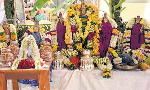 காலை, 11:00 மணிக்கு, ஸ்ரீ பத்மாவதி தாயாருக்கும், ஸ்ரீஆண்டாளுக்கும் சிறப்பு திருமஞ்சனம் நடக்கிறது. மாலை, 3:00க்கு, ஸ்ரீ வேங்கடேச பெருமாளுக்கு சிறப்பு திருமஞ்சனம், மாலை 6:00க்கு, யாக சாலை பூஜைகள் நடக்கின்றன.நாளை, (ஜூலை 4ல்)காலை, 5:00க்கு, விஸ்வரூப தரிசனம், காலை, 9:00 முதல் 10:00 மணிக்குள், யாகசாலை நிறை வேள்வி, யாத்ரா தானம், கும்பம் புறப்பாடு மற்றும் சிம்ம லக்னத்தில் மகா கும்பாபிஷேகம் நடக்கிறது. யாக சாலை பூஜைகளை தொடர்ந்து, அன்னதானம் நடந்து வருகிறது.