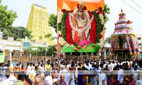 ராமேஸ்வரம் கோயிலில் ஜூலை 25ல் கொடியேற்றத்துடன் ஆடி திருக்கல்யாண விழா துவங்கியது. விழாவின் முக்கிய நிகழ்ச்சியாக இன்று தேரோட்டம் நடந்தது. இதற்காக திருக்கோயிலில் இருந்து காலை 10 மணிக்கு சர்வ அலங்காரத்துடன் பர்வதவர்த்தினி அம்மன் புறப்பாடாகினார். தொடர்ந்து வேதமந்திரங்கள் ஒலிக்க அம்மனுக்கு கோயில் குருக்கள் தீபாராதனை காண்பித்தனர். இதையடுத்து அம்மன் தேரில் வீதியுலா வந்து பக்தர்களுக்கு அருள்பாலித்தார். ஏராளமான பக்தர்கள் தேரை வடம்பிடித்து இழுத்தனர்.