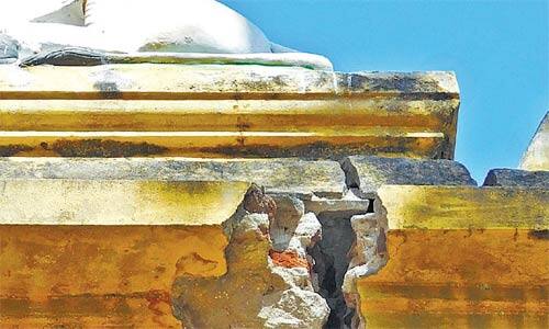 சுவர்களில் ஏற்பட்டுள்ள விரிசல்களுக்கு இடையே செடிகள் வளர்வதால் நாளுக்கு நாள் விரிசல் விரிவடைந்து பாதிப்பு அதிகமாகிறது. உடனடியாக கோயில் மராமத்து பணிகளை துவக்க அதிகாரிகள் நடவடிக்கை எடுக்க வேண்டும், என்றனர்.