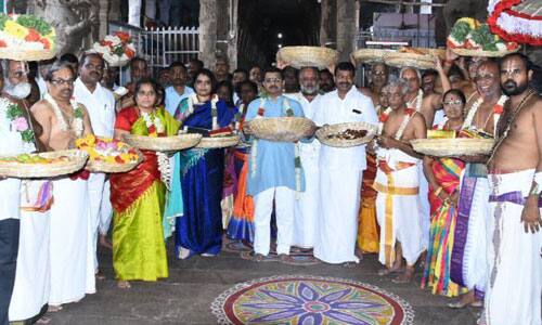 ஸ்ரீவில்லிபுத்துார்: ஸ்ரீவில்லிபுத்துார், ஆண்டாள் கோவிலில், இன்று நடைபெறும் தேரோட்டத்தின் போது, ஆண்டாள் சாற்றுவதற்கு, திருச்சி, ஸ்ரீரங்கம், ரங்கநாதர் கோவில் மற்றும் மதுரை கள்ளழகர் கோவிலில் இருந்து, பரிவட்டங்கள் மற்றும் மங்கலப் பொருட்கள் எடுத்துச் செல்லப்பட்டன.