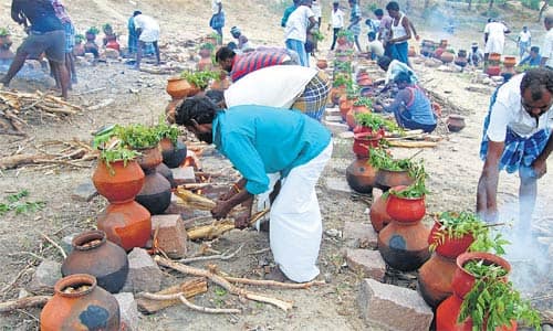 அவர்கள் கூறுகையில், காணிக்கையாக வந்த ஆடு, சேவல்களை வெட்டி மண்பானையிலிட்டு அதன் மேல் வேப்பம் இலைகளை போட்டு அவித்து அம்மனுக்கு படையல் இடுவோம். வேப்பம் இலையை போட்டு சமைத்தாலும் அம்மனுக்கு படையல் இடுவதால் கசக்காது” என்றனர்.