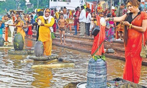 மத்தியபிரதேசம்: நாகபஞ்சமியை முன்னிட்டு மத்தியபிரதேச மாநிலம் ஜபல்பூர் கோவில் குளத் தில் சிவலிங்கத்துக்கு திருநங்கையர் அபிஷேகம் செய்து வழிபட்டனர்.