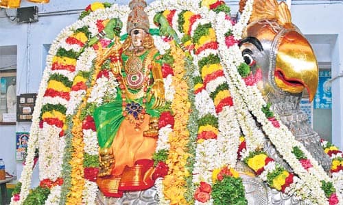 மதுரை: மீனாட்சி அம்மன் கோயிலில் ஆடி முளைக்கொட்டு திருவிழாவின் 6ம் நாளில் வெள்ளி கிளி வாகனத்தில் எழுந்தருளிய அம்மன்.