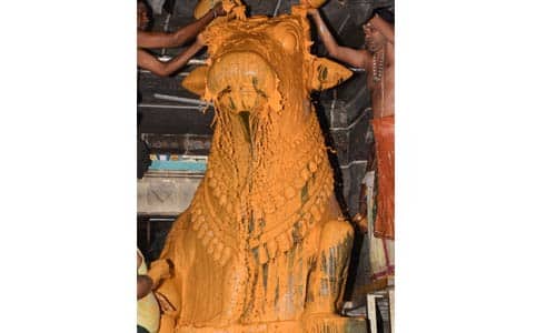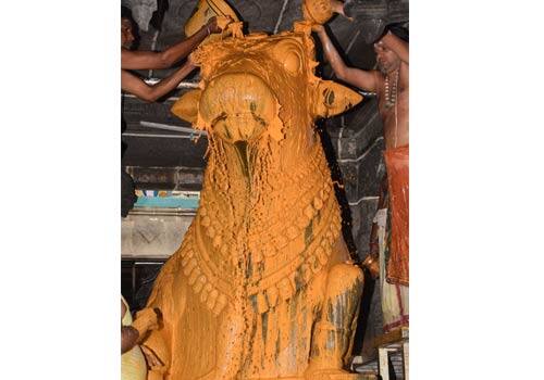 பிரதோஷத்தை முன்னிட்டு ராஜகோபுரம் அருகே உள்ள பெரிய நந்திபெருமானுக்கு பால், சந்தனம், போன்ற சிறப்பு அபிஷேகம் நடைபெற்றது. ஏராளமான மக்கள் தரிசனம் செய்தனர்.