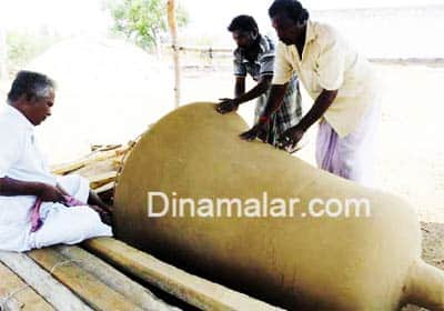 ஈரோடு: தமிழகத்தில் முதல் முதலாக, 1.5 டன் எடையில், மிகப் பெரிய ஆலய மணி, திருச்சி கோவிலுக்காக, ஈரோட்டில் தயாராகி வருகிறது.திருச்சி மாவட்டம், தென்னூரில், உக்கிர காளியம்மன் கோவில் புகழ் பெற்றது. அக்கோவிலில் தமிழகத்திலேயே, 1.5 டன் எடையில், ஆலய மணி வைக்க முடிவு செய்யப்பட்டது. ஈரோடு அருகே கரூர் பை-பாஸ் சாலையில் உள்ள இடிசியா இண்டஸ்டரியல் எஸ்டேட்டில் உள்ள, சிற்பி ராதாகிருஷ்ணன் ஸ்தபதியிடம், "ஆர்டர் கொடுக்கப்பட்டுள்ளது. மணி தயாரிக்கும் பணி நடந்து வருகிறது.