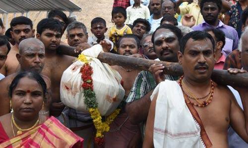 நேற்று அதிகாலையில், அந்த கலவையில் இருந்து, தலா, 75 கிலோ எடுத்து, கோவில் மடப்பள்ளியில், ஆவியில் வைத்து, இரண்டு பெரிய கொழுக்கட்டை தயாரிக்கப்பட்டது. அதில் ஒரு கொழுக்கட்டை, மலை அடிவாரத்தில் உள்ள மாணிக்க விநாயகருக்கு படைக்கப்பட்டது. பின் நேற்று காலை, 10 மணிக்கு, ஓதுவார்கள் பாடல் மற்றும் மங்கள இசையுடன் பக்தர்கள், மற்றொரு கொழுக்கட்டையை துாளியில் கட்டி, மலை மீது உள்ள உச்சிப்பிள்ளையாருக்கு நெய்வேத்தியம் செய்வதற்காக, எடுத்துச் சென்றனர்.