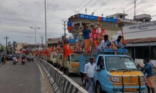 வெள்ளகோவில் சுற்றுப்பகுதியில், இந்து முன்னணி சார்பில், பிரதிஷ்டை செய்யப்பட்ட விநாயகர் சிலைகள் விசர்ஜன ஊர்வலம் நேற்று 3ம் தேதி நடந்தது. முன்னணி ஒன்றிய தலை வர் சுரேஷ் குமார், வடக்கு நகர தலைவர் கோபிநாத், தெற்கு ஒன்றி யம் யுவராஜா, சதீஸ்வரன், விஷ்வ ஹிந்து பரிஷத் நிர்வாகிகள் சந்திரசேக ரன், சரவணன் மற்றும் பா.ஜ.க., அமைப்பு சாராஅணி மாநில செயலாளர் பன்னீர்செல்வம், நகர் அமைப்பாளர் விஜயன், உட்பட பலர்பங்கேற்றனர்.
