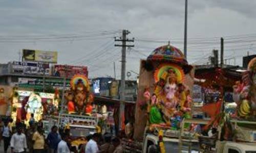 எட்டு சிலைகள் நகரின் முக்கிய வீதிகள் வழியாக ஊர்வலமாக எடுத்து செல்லப்பட்டு கோட்டைக் குளத்தில் கரைக்கப்பட்டது. மாவட்ட பொது செயலாளர் மகேந்திரன் தலைமை வகித்தார். தலை வர் செல்வக்குமார் முன்னிலை வகித்தார். மாநில தலைவர் செந்தில்கண்ணன், இந்து தர்மசக்தி மாநில தலைவர் நித்யசர்வானந்தா மற்றும் பலர் பங்கேற்றனர்.