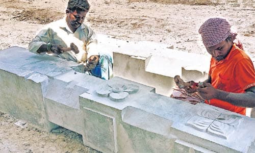 ஆறு மாதங்களுக்கு முன் துவங்கிய இப்பணி சில மாதங்களில் நிறைவு பெறும். ஸ்தபதி பாண்டியன் தலைமையில் பணியாளர்கள் பழமை மாறாத கல் துாண்களாக செதுக்கும் பணியில் ஈடுபட்டுள்ளனர்” என்றார்.