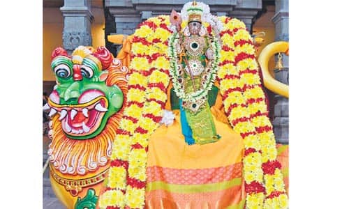 திண்டுக்கல்: கந்தசஷ்டி விழாவை முன்னிட்டு திண்டுக்கல் பத்மகிரீஸ்வரர், அபிராமியம்மன் கோயிலில் சிம்ம வாகனத்தில் முருகன் பக்தர்களுக்கு காட்சி அளித்தார்.