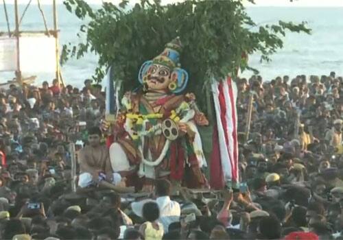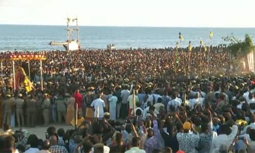 துாத்துக்குடி: வெற்றிவேல் முருகனுக்கு அரோகரா என்ற பலலட்சக்கணக்காக பக்தர்களின் கோஷம் விண்ணதிர, திருச்செந்தூர் கோயில் கடற்கரையில் ஆணவம் கொண்டு போரிட்ட சூரனை, சுவாமி ஜெயந்திநாதர் சம்ஹாரம் செய்தார்.