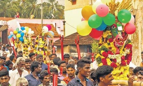 இதற்காக கடந்த 15 தினத்திற்கு முன் புரவிகள் செய்ய பிடி மண் வழங்கினர். அரண்மனை புரவி உட்பட 6 புரவிகள் ஊர்வலமாக எடுத்து செல்லப்பட்டன. புரவிகள் மேல தெரு, சந்திவீரன் கூடம், சுக்காம்பட்டி சாலை வழியாக அய்யனார் கோயிலை அடைந்தது. விழா கமிட்டியினர் ஏற்பாட்டை செய்திருந்தனர்.