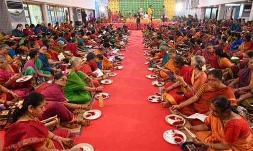 ஒரு கோடி முறை லலிதா சஹஸ்ரநாமம் பாராயணம், வாரனாசி ஸ்ரீ வித்யாஷ்ரமத்தில் இருந்து சுவாமிஜி அபிஷேக் பிரம்மச்சாரி தலைமையில் மயிலாப்பூர் வெங்கடேஷ் அக்ரஹாரம் சாலையில் உள்ள வேதாந்த தேசிகர் அரங்கில் இன்று நடந்தது. மயிலாப்பூரில் உள்ள வேதாந்த தேசிகர் மண்டபத்தில் நாட்டு நலனுக்காக ‘ஸ்ரீ வித்ய கோடி குங்குமார்ச்சன் மகா யாகம்’ ஒரு கோடி முறை லலிதா சஹஸ்ரநாமம் பாராயணம் செய்து பெண்கள் வழிபட்டனர்.