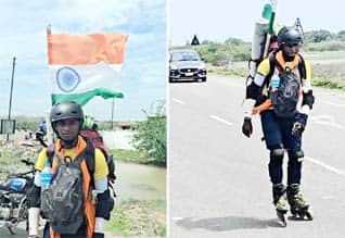 ராமநாதபுரம்: ஜார்க்கண்ட் மாநிலத்தை சேர்ந்த அஜய்குமார் விஸ்வகர்மா 27, தேசியக்கொடி ஏந்தி அந்த ...